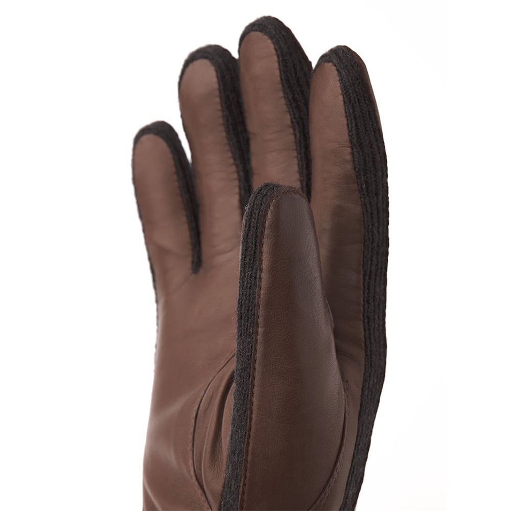 Sportig och bekväm modehandske från Hestra som kombinerar ull och finaste lammnappa. En vacker och värmande handske för höst och mildare vinterdagar. Huvudmaterialet är ribbstickad ulljersey, medan handskens ovansida och innerhand är i italiensk lammnappa med fantastisk mjukhet och lyster. Halvpiqué-sömmar längs fingrarnas ovansida och ribbstickad mudd.