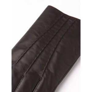 Härligt rejäl vinterhandske från Hestra med värmande lammpälsfoder. Sydd i hjortskinn, ett kraftigt och samtidigt mjukt läder som håller värmen väldigt bra. En klassisk herrmodell med dekorativ denta på ovanhanden och läderrem med tryckknapp på handleden.