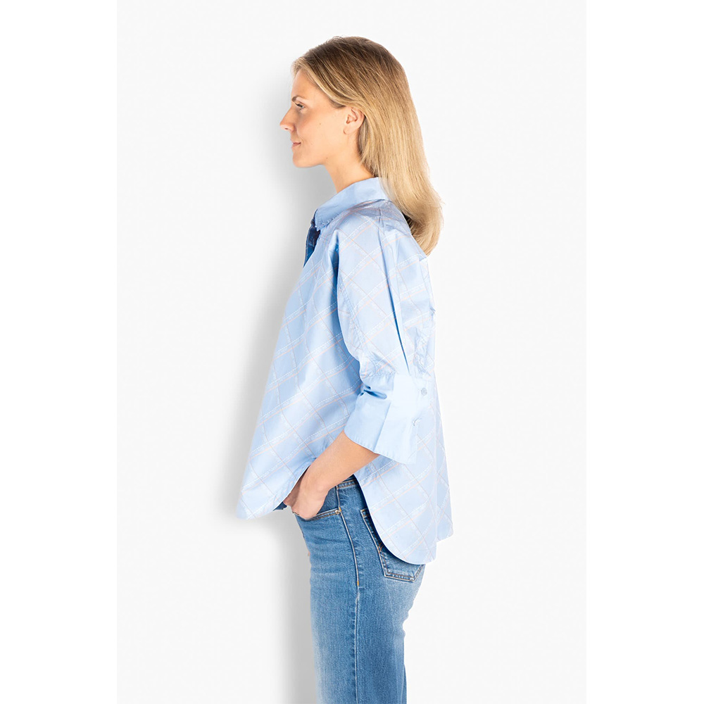 En elegant skjorta med ett elegant tryck och en avslappnad, modern silhuett. Designad med en klassisk krage och vida trekvartsärmar för en avslappnad men ändå elegant look. Ett mångsidigt plagg som sömlöst övergår från vardagskläder till exklusiva tillfällen.