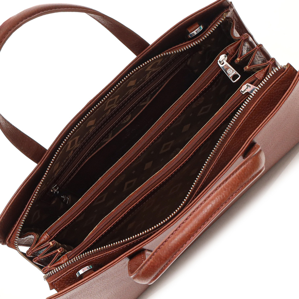 Elegant och funktionell väska som kan bäras som både crossbody och axelväska. Den har tre rymliga fack med dragkedja för optimal organisation. Den justerbara axelremmen säkerställer en bekväm passform, medan de korta handtagen ger en klassisk look. Perfekt för både jobb och fritid.